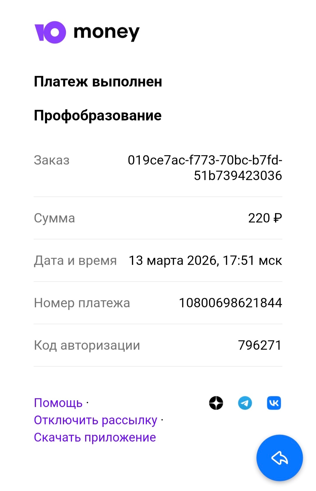 - Скриншот чека