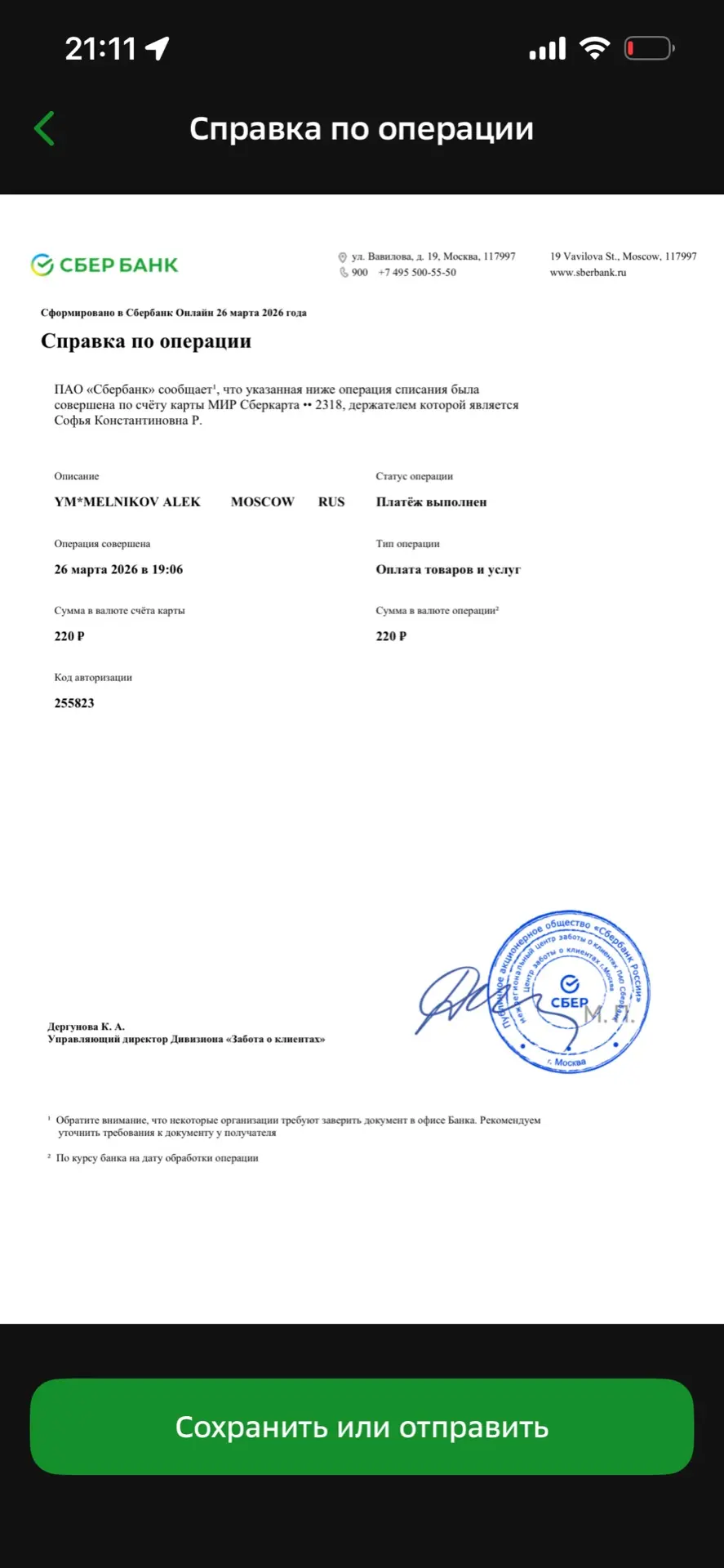 - Скриншот чека
